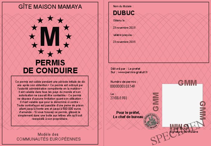 Envoyez par email le Permis de conduire personalisé
