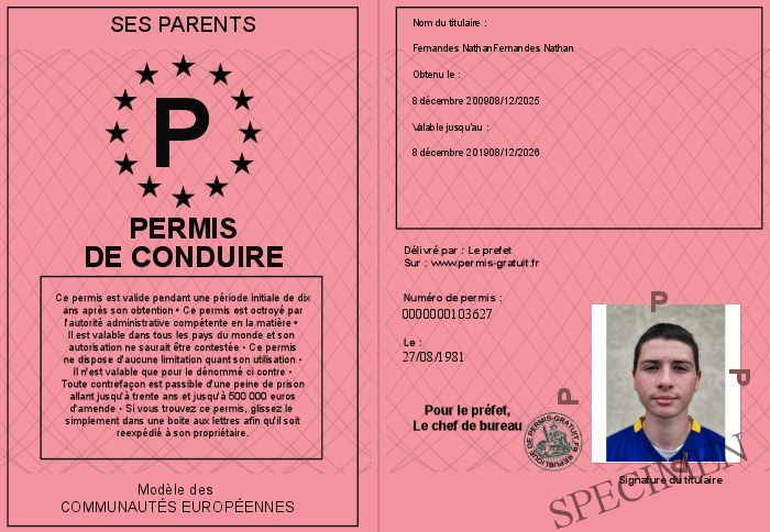Envoyez par email le Permis de conduire personalisé par la ses parents ! Personnaliser mon permis