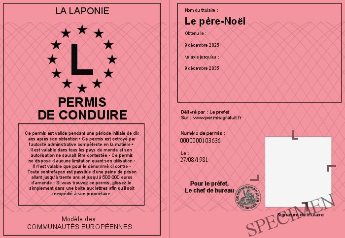 Envoyez par email le Permis de conduire personalisé par la La Laponie ! Personnaliser mon permis