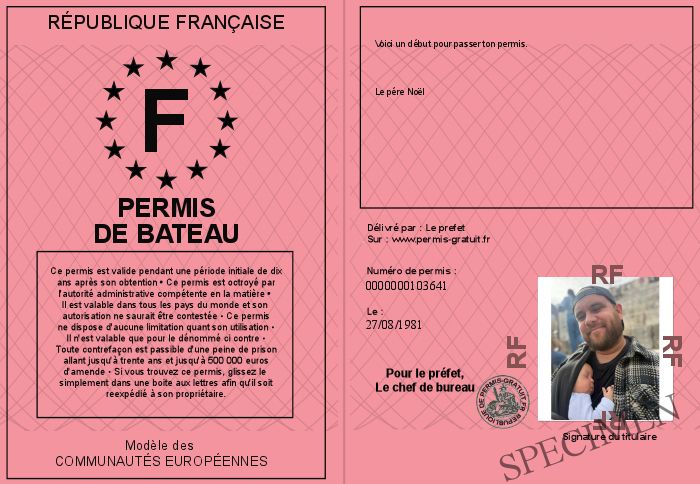 Envoyez par email le Permis de bateau personalisé