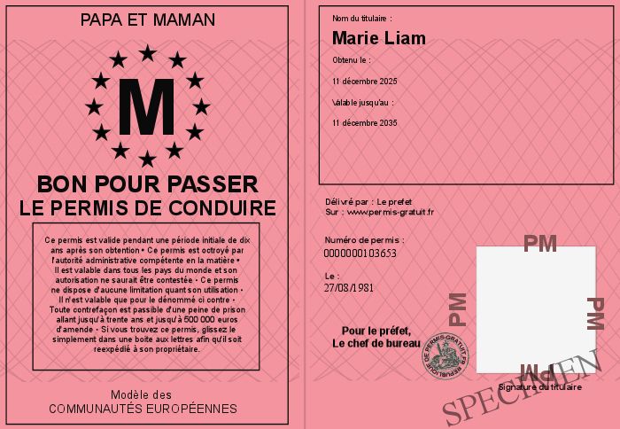 Envoyez par email le Bon pour passer le permis de conduire personalisé