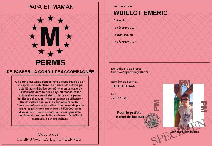 Envoyez par email le Permis de passer la conduite accompagnée personalisé