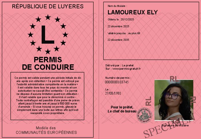 Envoyez par email le Permis de conduire personalisé