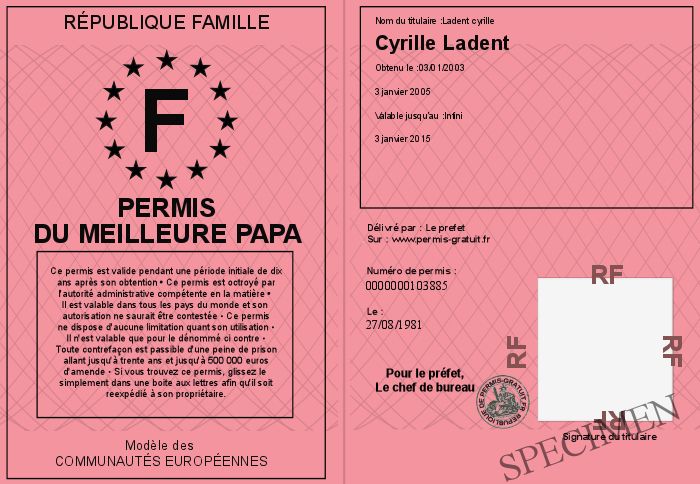 Envoyez par email le Permis du meilleure papa personalisé