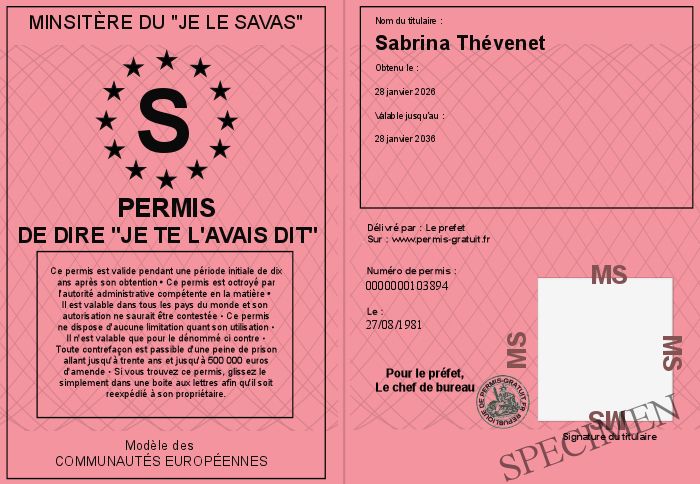 Envoyez par email le Permis de dire -Je te l'avais dit- personalisé