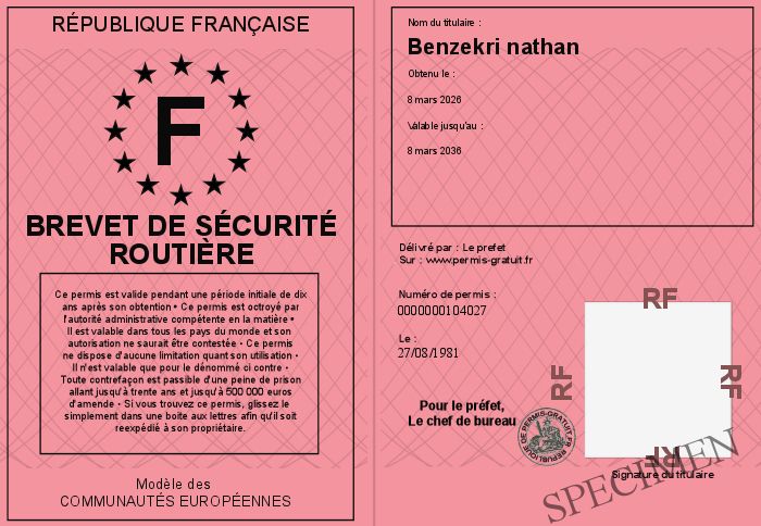 Envoyez par email le Brevet de Sécurité Routière personalisé