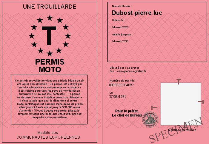 Envoyez par email le Permis moto personalisé par la Une trouillarde ! Personnaliser mon permis