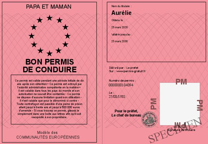 Envoyez par email le Bon Permis de conduire personalisé