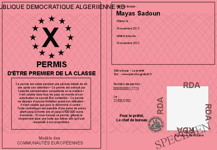 Envoyez par email le Permis D'être Premier De La classe personalisé
