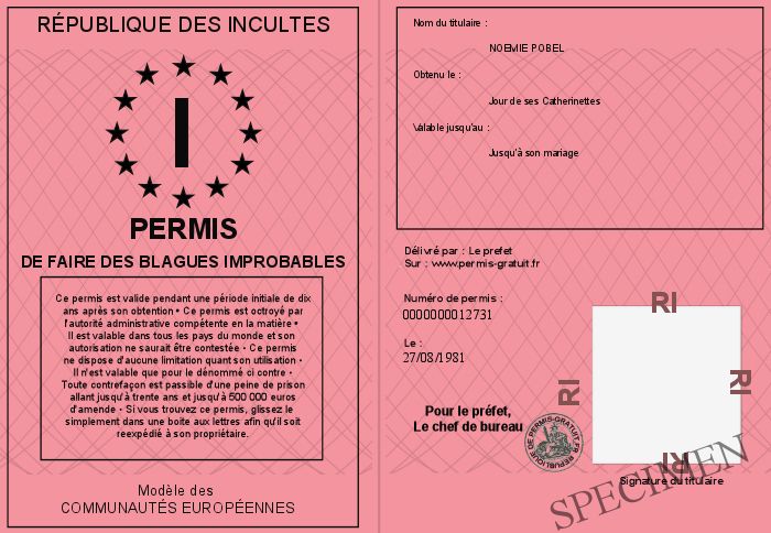 Envoyez par email le Permis de faire des blagues improbables personalisé