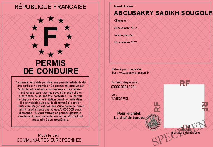 Envoyez par email le Permis de conduire personalisé