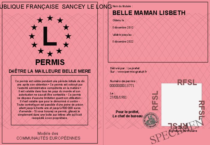 Envoyez par email le Permis D4ËTRE LA MAILLEURE BELLE MERE personalisé