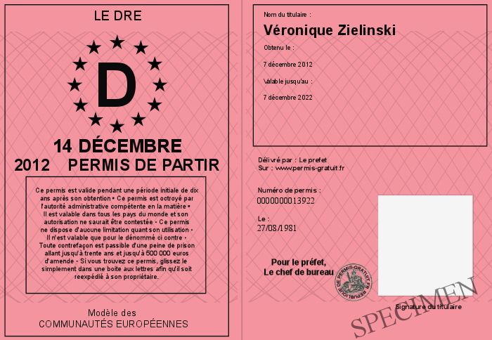 Envoyez par email le 14 décembre 2012 Permis de partir personalisé