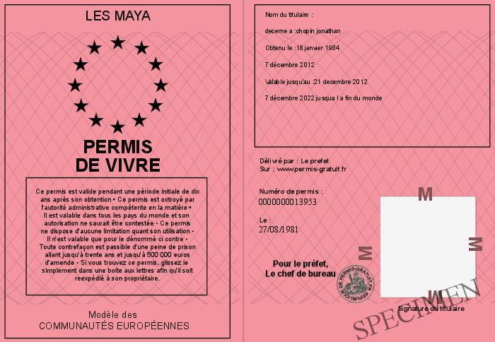 Envoyez par email le permis de vivre personalisé par la les maya ! Personnaliser mon permis