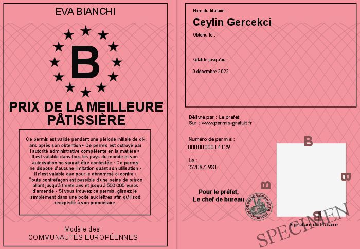 Envoyez par email le prix de la meilleure pâtissière personalisé