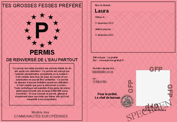 Envoyez par email le Permis de renversé de l'eau partout personalisé