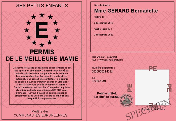 Envoyez par email le Permis de le MEILLEURE Mamie personalisé