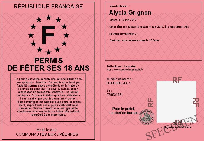Envoyez par email le Permis de fêter ses 18 ans personalisé