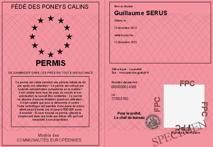 Envoyez par email le Permis de gambader dans les prés en toute insouciance personalisé