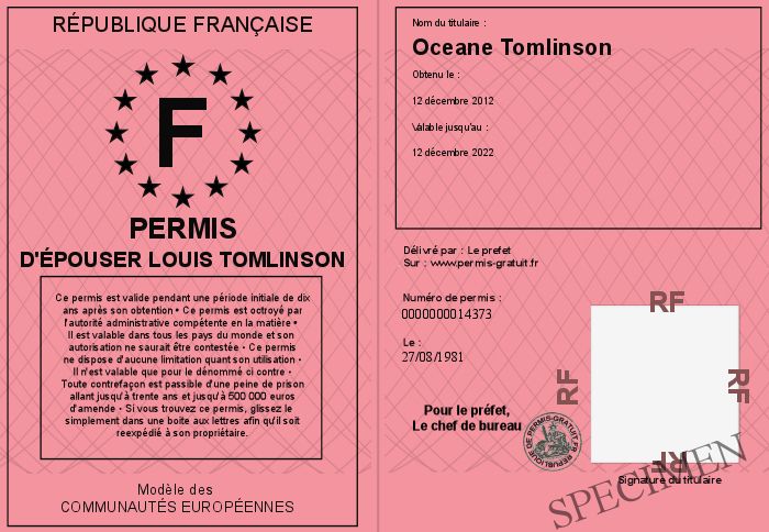 Envoyez par email le Permis d'épouser Louis Tomlinson personalisé