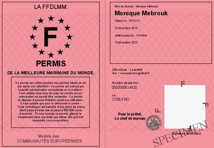 Envoyez par email le Permis De La Meilleure Marraine Du Monde. personalisé