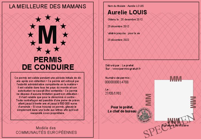 Envoyez par email le Permis de conduire personalisé