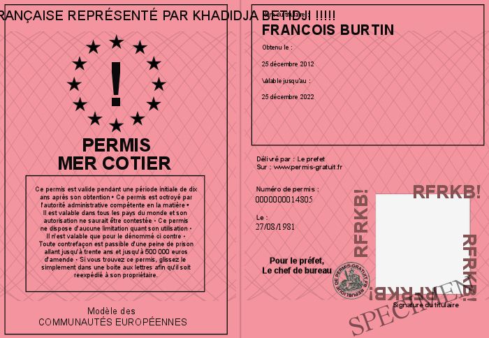 Envoyez par email le Permis Mer Côtier personalisé