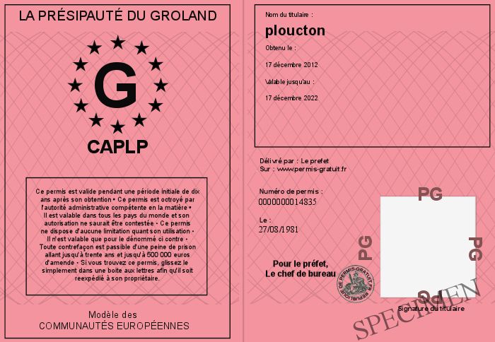 Envoyez par email le CAPLP personalisé par la la présipauté du Groland ! Personnaliser mon permis