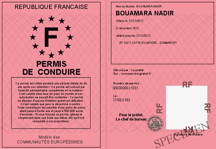 Envoyez par email le Permis de conduire personalisé