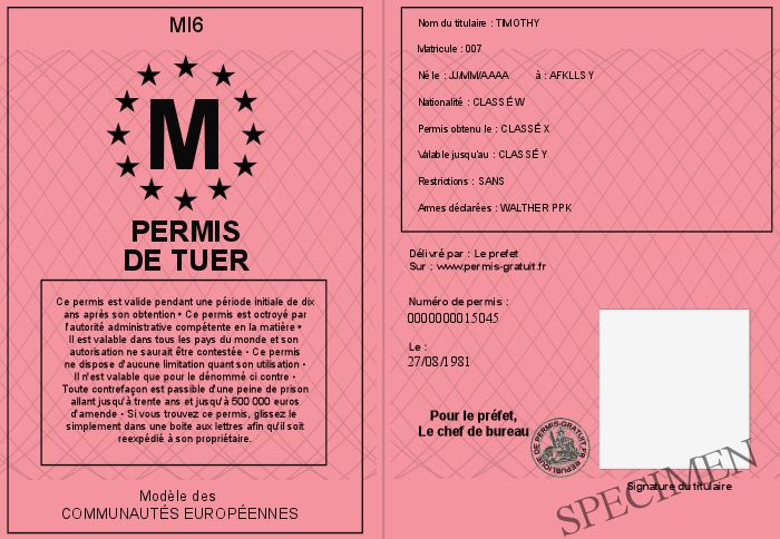Envoyez par email le Permis de tuer personalisé par la MI6 ! Personnaliser mon permis
