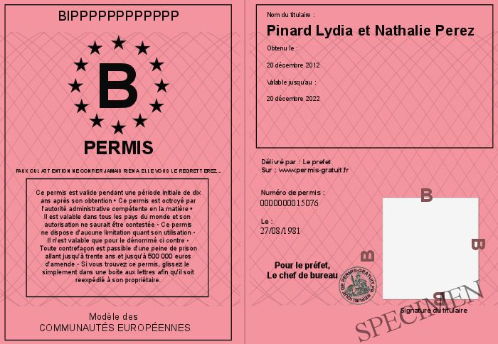 Envoyez par email le Permis faux cul attention ne confier jamais rien a elle vous le regretterez.... personalisé