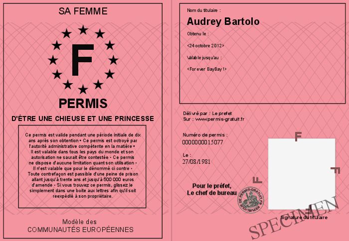 Envoyez par email le Permis d'être une chieuse et une princesse personalisé