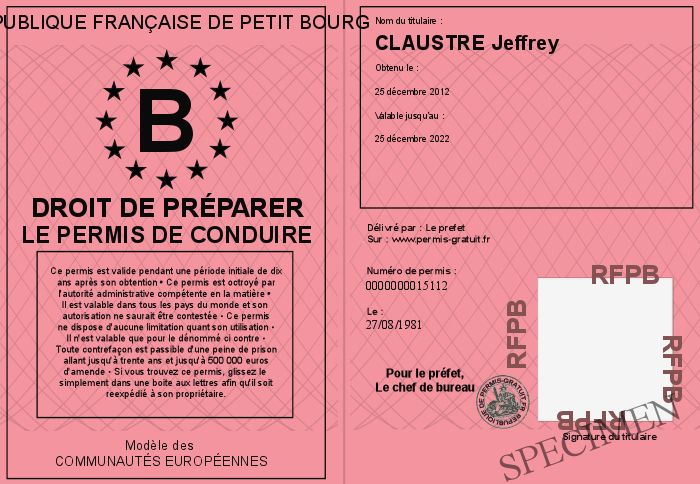 Envoyez par email le Droit de préparer le Permis de conduire personalisé