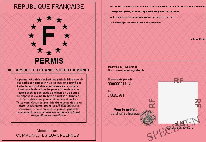 Envoyez par email le Permis de la meilleur grande soeur du monde personalisé