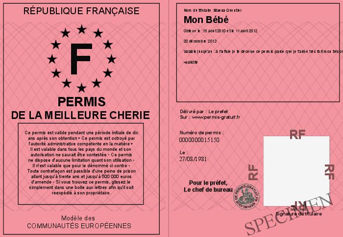 Envoyez par email le Permis de la meilleure cherie personalisé