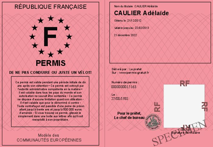 Envoyez par email le Permis de ne pas conduire ou juste un vélo!!! personalisé