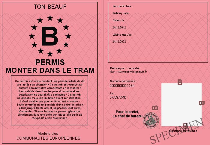 Envoyez par email le Permis monter dans le tram personalisé