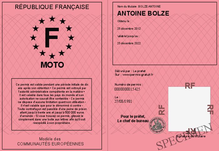 Envoyez par email le MOTO personalisé par la République Française ! Personnaliser mon permis