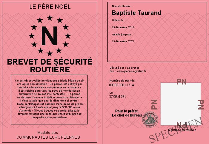Envoyez par email le Brevet de Sécurité routière personalisé