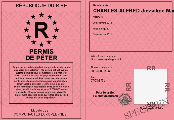 Envoyez par email le Permis de péter personalisé par la République du rire ! Personnaliser mon permis