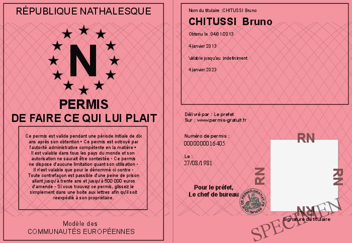 Envoyez par email le Permis de faire ce qui lui plait personalisé