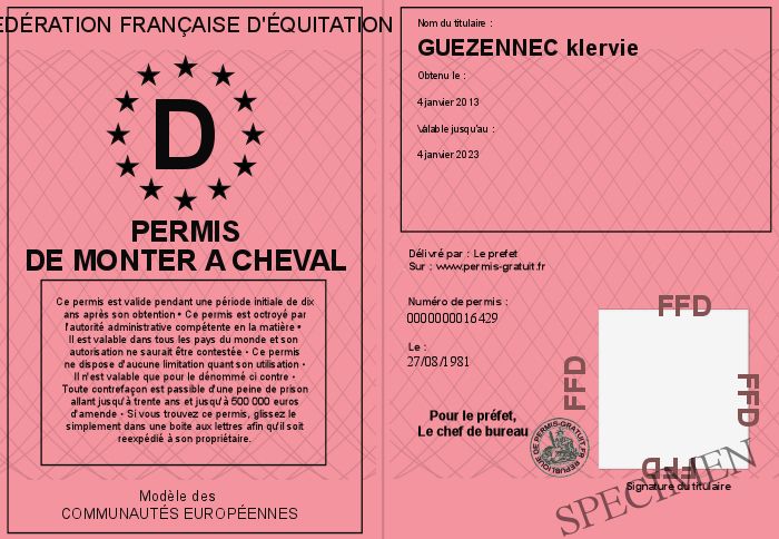 Envoyez par email le permis de monter a cheval personalisé