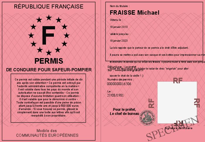 Envoyez par email le Permis de conduire pour Sapeur-Pompier personalisé