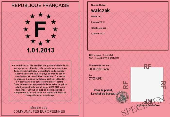 Envoyez par email le 1.01.2013 personalisé par la République Française ! Personnaliser mon permis