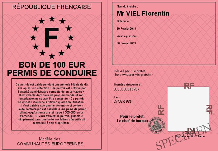 Envoyez par email le Bon de 100 eur Permis de conduire personalisé