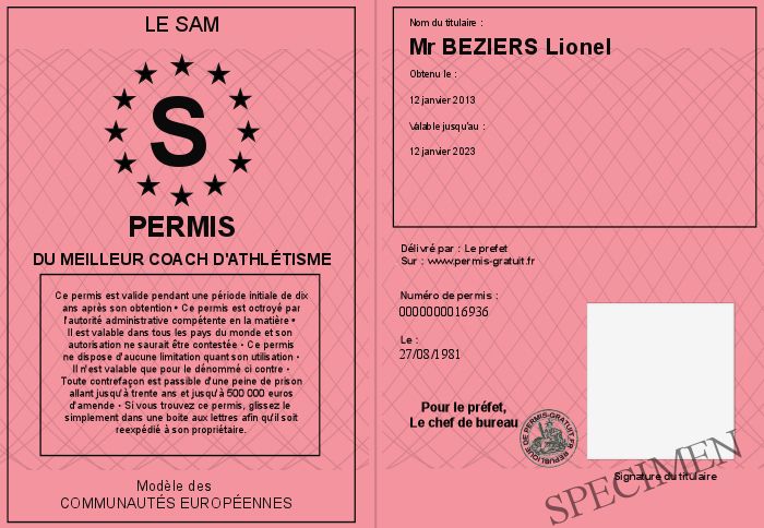 Envoyez par email le Permis du Meilleur Coach d'Athlétisme personalisé