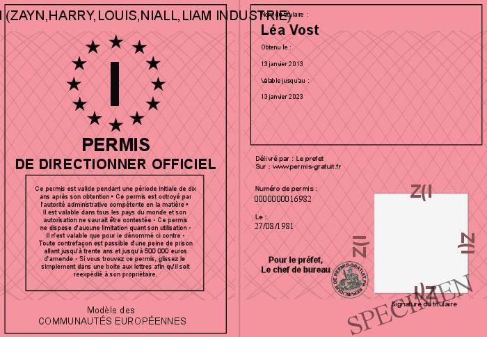 Envoyez par email le Permis de Directionner Officiel personalisé