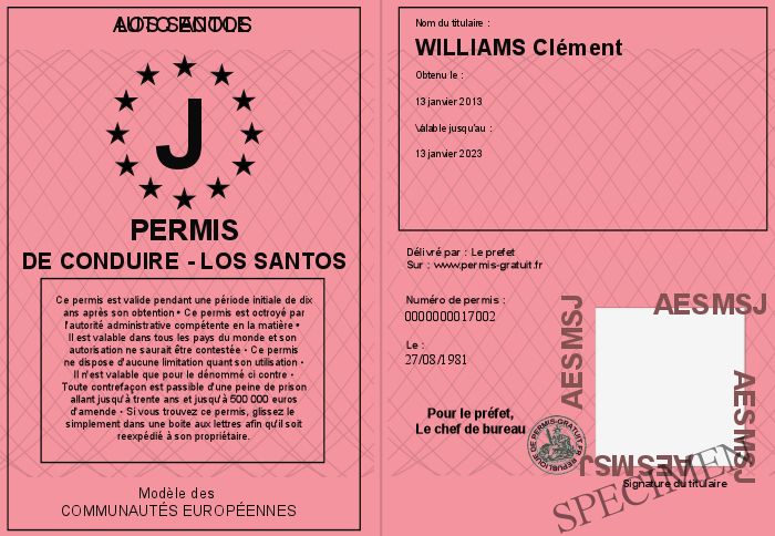 Envoyez par email le Permis de conduire - Los Santos personalisé