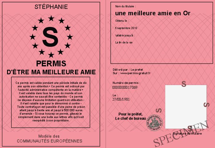 Envoyez par email le Permis d'être ma meilleure amie personalisé
