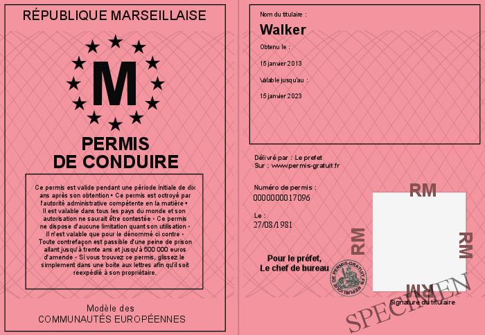 Envoyez par email le Permis de conduire personalisé